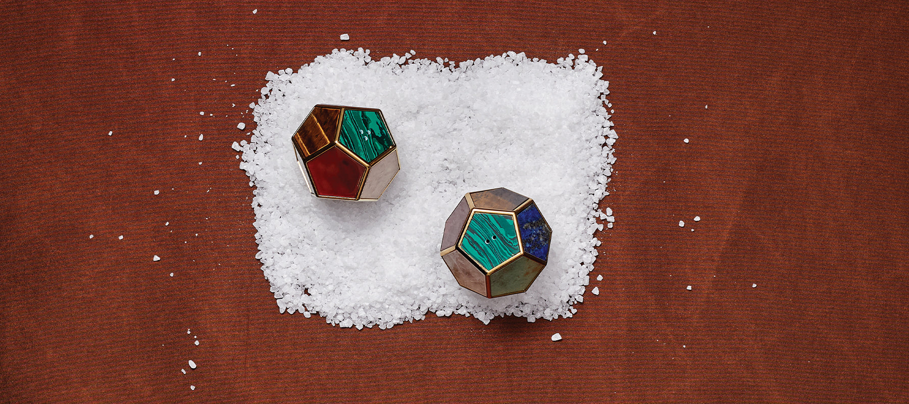 Masterfully crafted by hand, L'Objet Spice Jewels incorporate a variety of elements including hand-blown crystal, 24K gold and platinum plating, and Swarovski crystals to create salt and pepper shakers of distinction. Each set of 2 is presented in a luxury gift box.