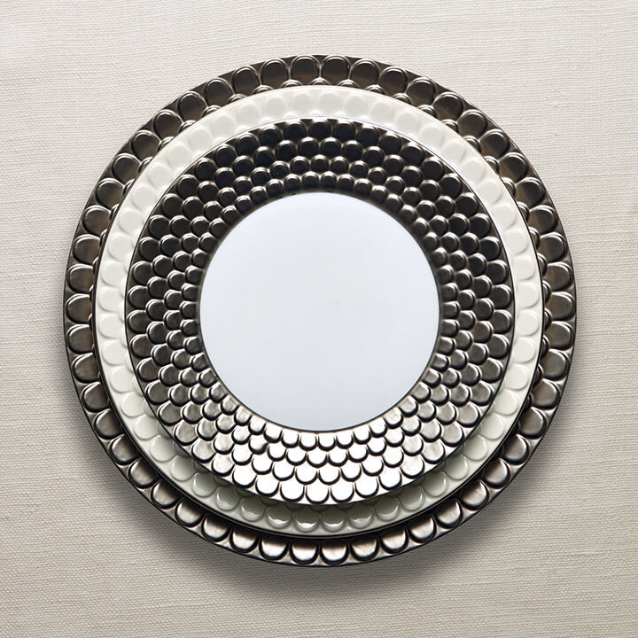 The Aegean dinnerware collection is introduced, inspired by Mediterranean sea, ancient forms, and the poetry of the table. Today, available in white, gold, and platinum, it stands as L’OBJET’s longest-running dinnerware collection and a pure expression of timeless design.