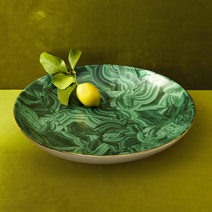 The Malachite collection debuts as part of the Cabinet of Curiosities. With its impactful green motif, it quickly became a signature of the House. Still a bestseller today, Malachite embodies L’OBJET’s belief that good design transcends time and trends.